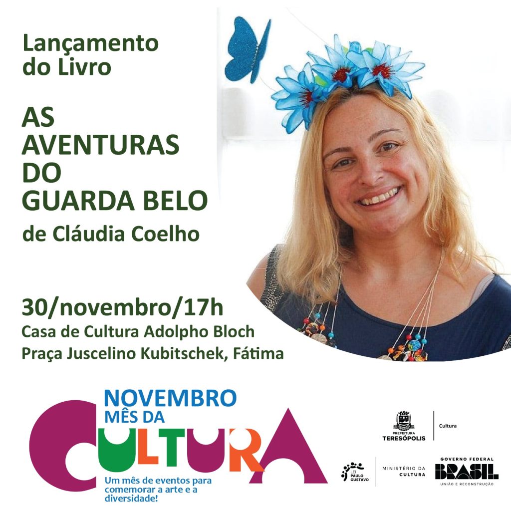 Às 17h, acontecerá o lançamento do livro ‘As Aventuras do Guarda Belo’, da escritora e produtora cultural Cláudia Coelho, na Casa de Cultura Adolpho Bloch, em Araras.