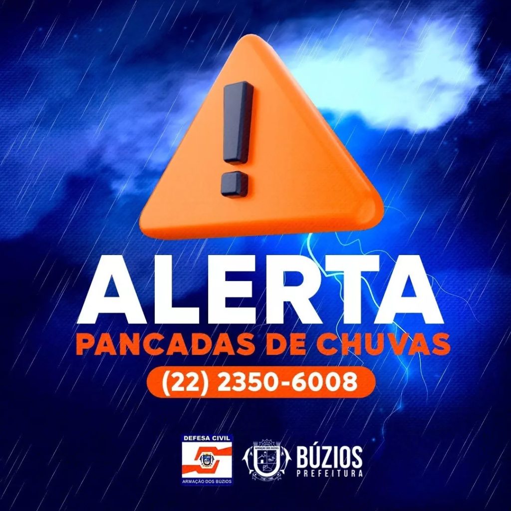 A Secretaria de Segurança Pública de Búzios, por meio da Coordenadoria de Defesa Civil, alerta para a previsão de chuva em todo o estado, em decorrência da passagem de um ciclone extratropical. São esperadas pancadas isoladas de chuva fraca a moderada, acompanhadas de raios, na região.