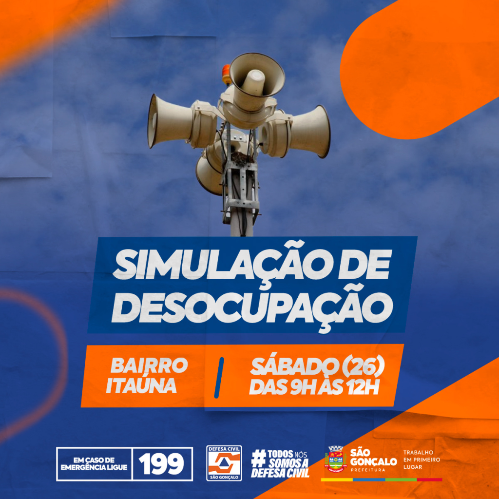 “O nosso simulado é feito mensalmente nas comunidades atendidas pelo Sistema de Alerta e Alarme de São Gonçalo. Nosso objetivo com o exercício é dar continuidade ao projeto “São Gonçalo Resiliente”, que consiste no acionamento das sirenes. Antes de realizarmos o exercício simulado, vamos até o local e informamos sobre a ação. Isso já foi feito, nessa semana mesmo, em Itaúna, portanto, a população está ciente do que será feito. Durante o evento, vamos prestar informações sobre riscos, vulnerabilidades e comportamentos diante de situações de desastres. O acionamento da sirene será às 10h. Na ação, contaremos com o apoio de agentes da saúde do município”, disse o major Felipe Assunção, subsecretário de Defesa Civil.
