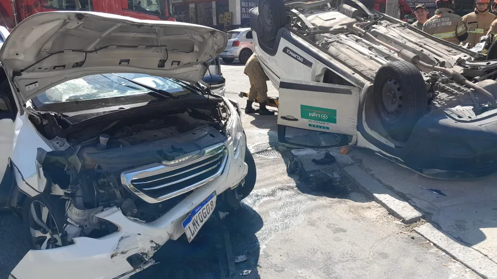 Duas pessoas ficam feridas após carro da Light capotar em batida com outro veículo na Ilha do Governador