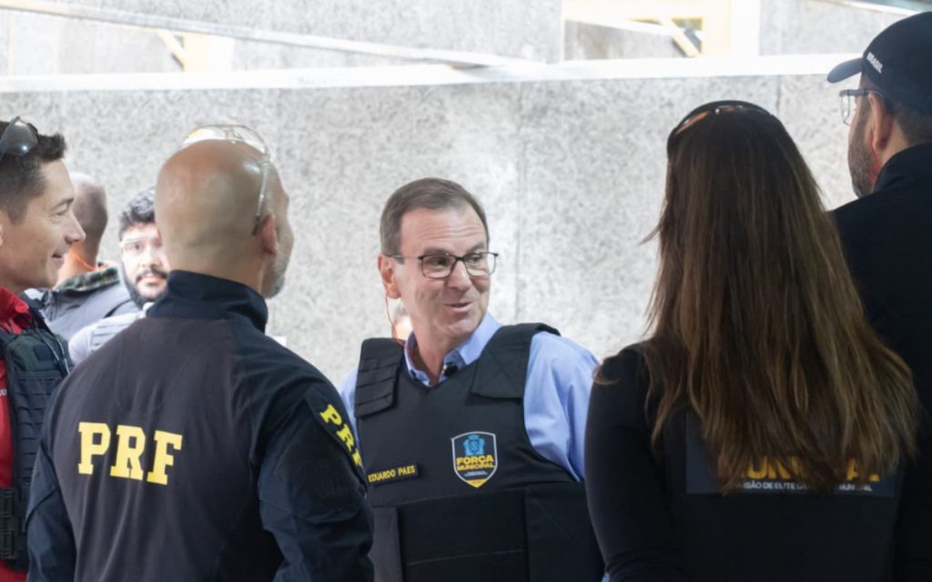 O prefeito Eduardo Paes e o diretor-geral da Força Municipal, Brenno Carnevale, visitaram a Academia de Formação da Divisão de Elite da Guarda Municipal em Irajá, na Zona Norte do Rio, nesta segunda-feira (20). Eles foram recebidos pelos instrutores da Polícia Rodoviária Federal (PRF) e da Secretaria Nacional de Segurança Pública (Senasp), responsáveis pelos treinamentos práticos e teóricos dos futuros agentes.