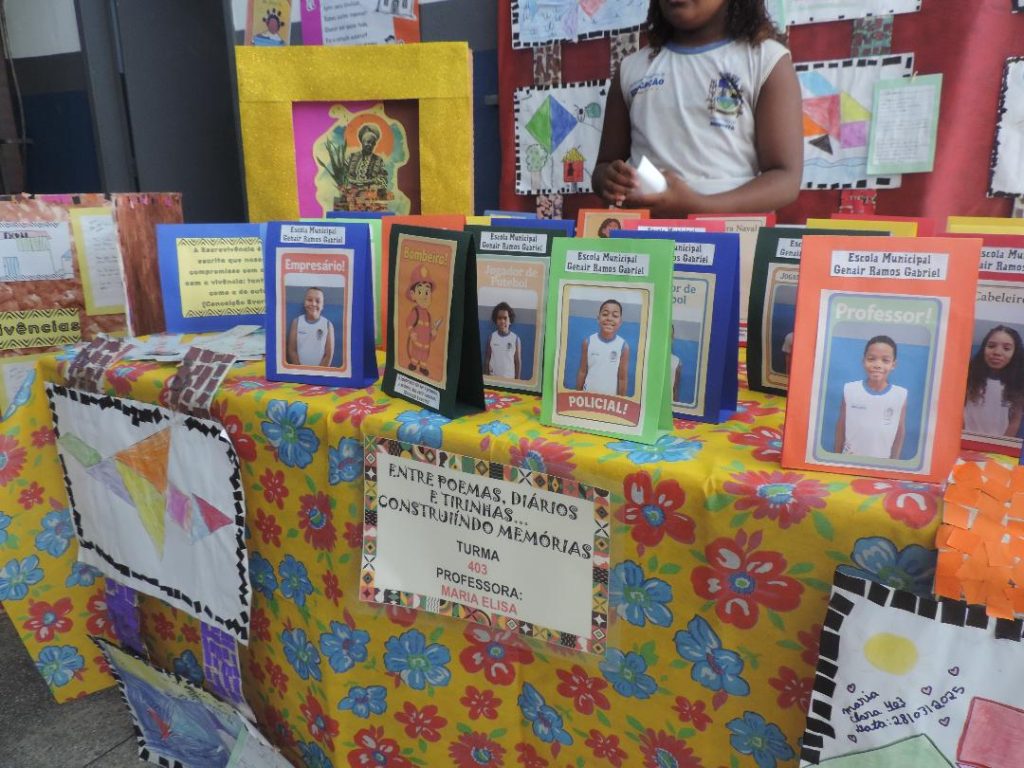 Tendo como base o projeto pedagógico “Genair de Mãos Dadas com a Leitura”, também foram desenvolvidas exposições baseadas nos livros infantis marcados pela representatividade negra e indígena, e pela valorização da cultura brasileira. Vânia Abreu, diretora da unidade escolar, esclarece a relevância de fomentar o debate dessas temáticas no ambiente escolar para o desenvolvimento emocional e pedagógico dos estudantes. “A gente sabe como uma autoestima abalada pode comprometer o desempenho escolar e social da criança. Então, trabalhamos para que os estudantes sintam orgulho da cultura, da ancestralidade, para que possamos evoluir como sociedade e promover ainda mais qualidade dentro da Educação municipal”, argumenta.