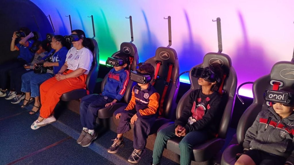 A Nave Enel consiste em uma plataforma móvel montada sobre um ônibus, que abriga salas com recursos audiovisuais, jogos lúdicos e educacionais com tela touchscreen e tecnologia de realidade virtual 3D sobre o uso consciente da energia elétrica.