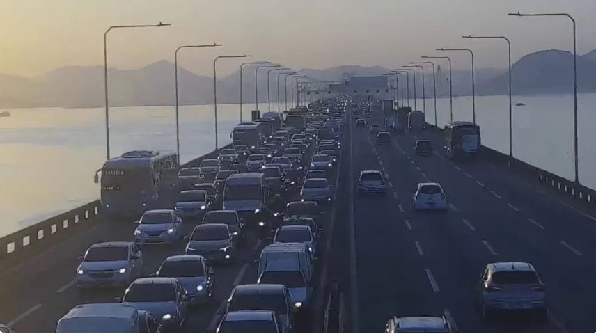 Há trânsito com pontos de retenção ao longo da via. De acordo com a Ecoponte, o tempo de travessia era de 48 minutos, até às 17h20. Devido ao acidente, há reflexos na Avenida Brasil, na altura de Manguinhos.