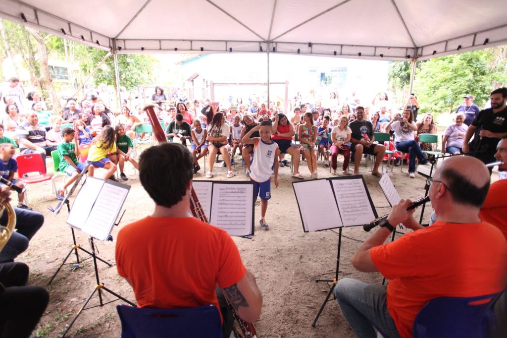“É fantástico ter o quinteto da Orquestra Sinfônica Brasileira aqui na rede municipal. As crianças têm contato direto com os instrumentos e com a música, o que é fundamental para o desenvolvimento de cada aluno. Além disso, é um momento especial porque envolve também as famílias.”, destacou a secretária de Educação, Maria Virgínia Andrade Rocha.
