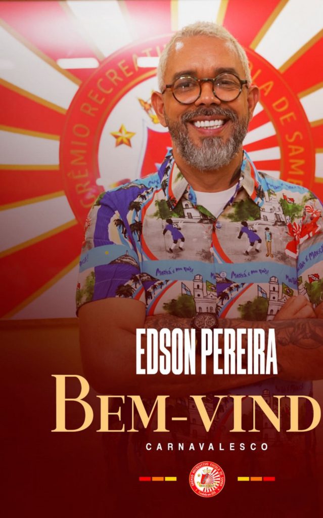 “Hoje damos as boas-vindas ao nosso novo carnavalesco, Edson Pereira. Após dois anos na Unidos da Tijuca, ele chega para somar talento, experiência e novas ideias ao nosso projeto.