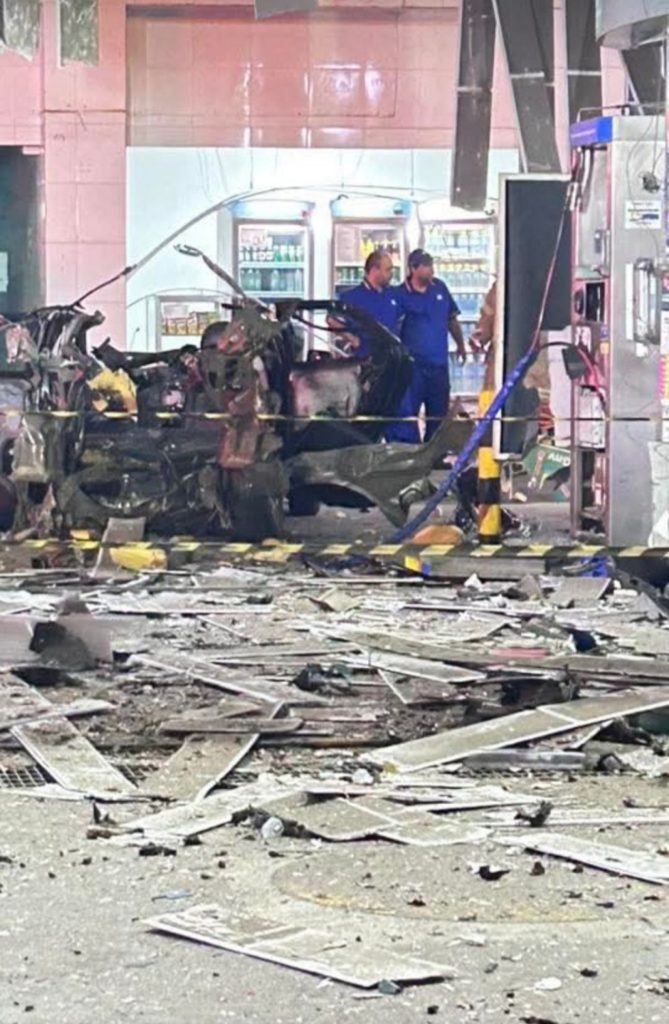 Explosão de carro em posto de gasolina deixa dois feridos na Praça da Cruz Vermelha