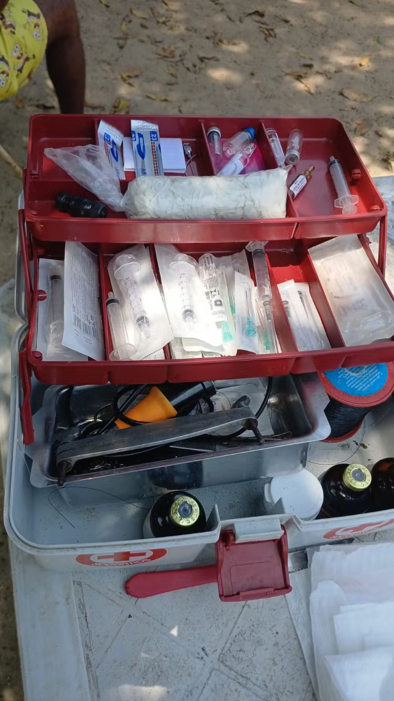 No local, foram apreendidos vários equipamentos cirúrgicos, medicamentos de uso veterinário, seringas, agulhas e fios de sutura. Os cães estacam em canis pequenos, com pouca ventilação, sem água e alimentos, nem carteiras de vacinação.