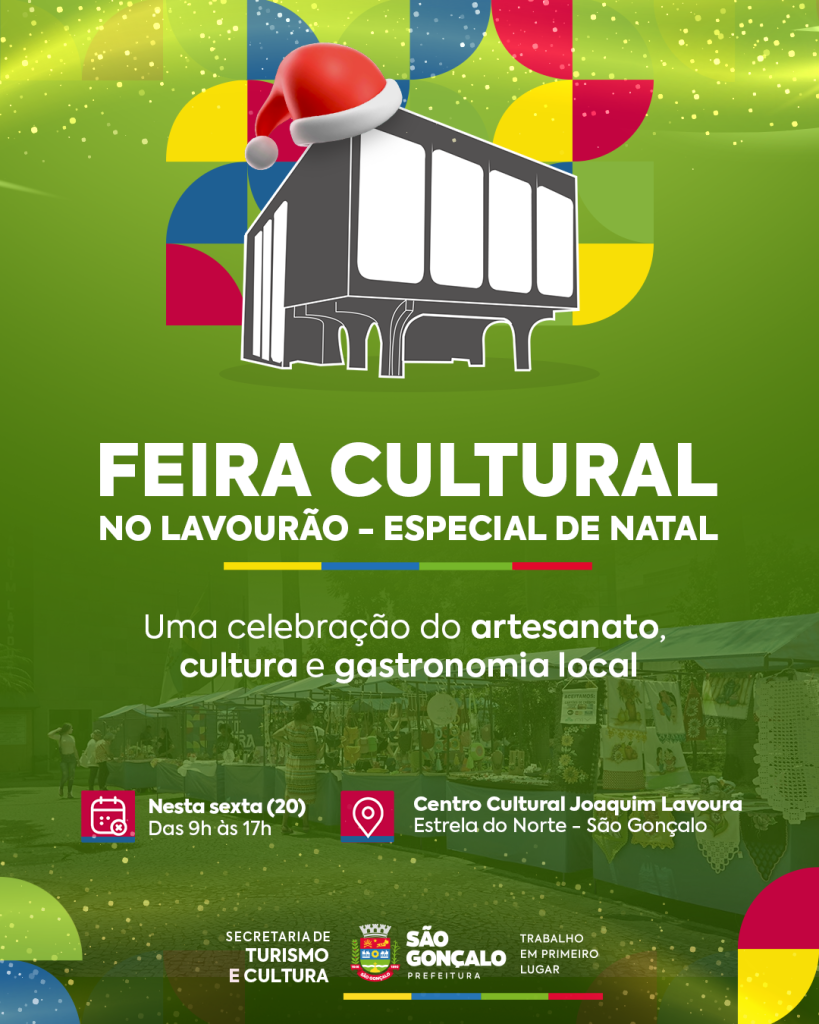 A Secretaria de Turismo e Cultura da Prefeitura de São Gonçalo convida toda a comunidade para a Feira da Cultura Especial de Natal, que acontecerá nesta sexta-feira, 20 de dezembro, das 9h às 17h, no Centro Cultural Joaquim Lavoura. Com entrada gratuita, o evento promete ser uma celebração do espírito natalino, oferecendo opções de presentes, decorações natalinas feitas à mão e uma variedade de delícias típicas desta época festiva.