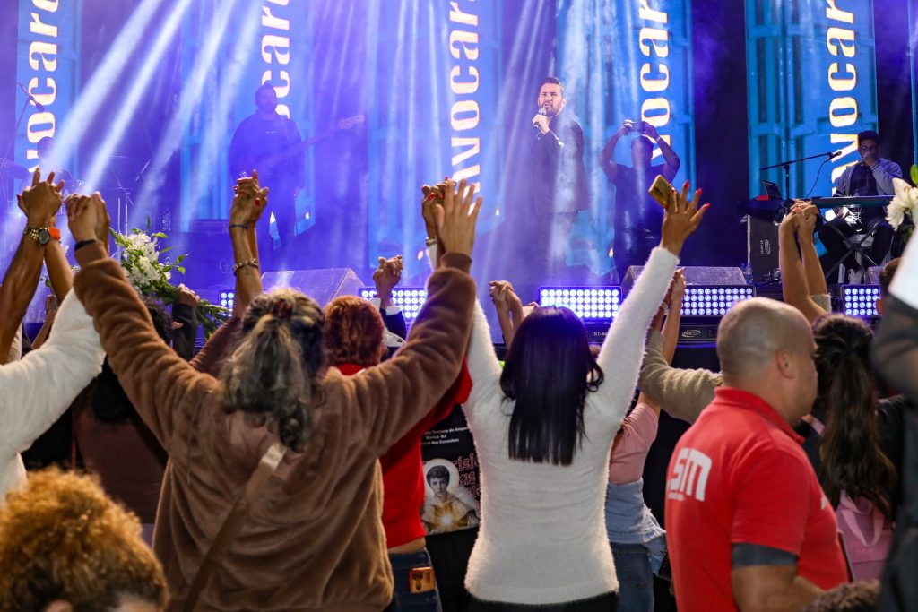 Após o cortejo religioso, o público lotou a Praça Orlando de Barros Pimentel para assistir aos shows de música católica. O cantor Tony Alysson conduziu um momento de louvor coletivo com canções como “Sustenta o fogo” e “Marca da vitória”. Em seguida, Juninho Cassimiro deu continuidade à celebração com músicas que animaram e tocaram os fiéis. “Eu cantei do início ao fim. Foi uma emoção inexplicável. Momento de fé e alegria”, comentou a estudante Ana Clara, de 21 anos.