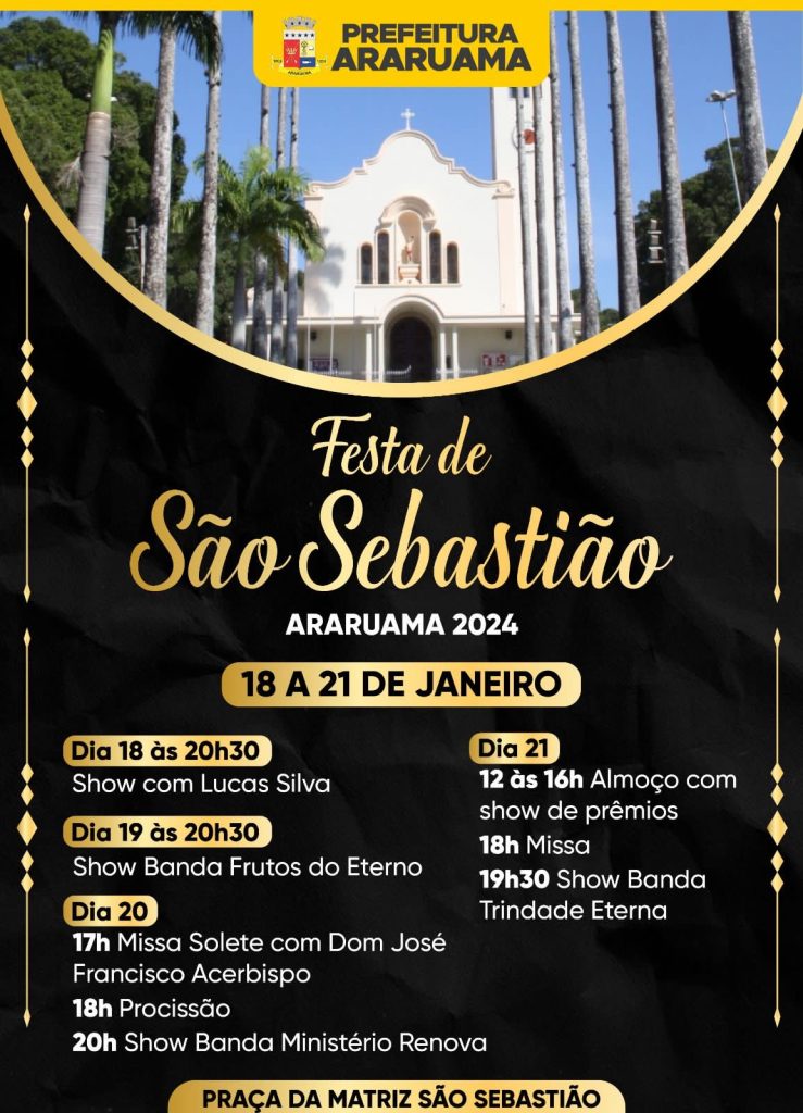 A tradicional Festa de São Sebastião, em Araruama , vai acontecer esse ano de 18 a 21 de janeiro, na Igreja Matriz de São Sebastião.