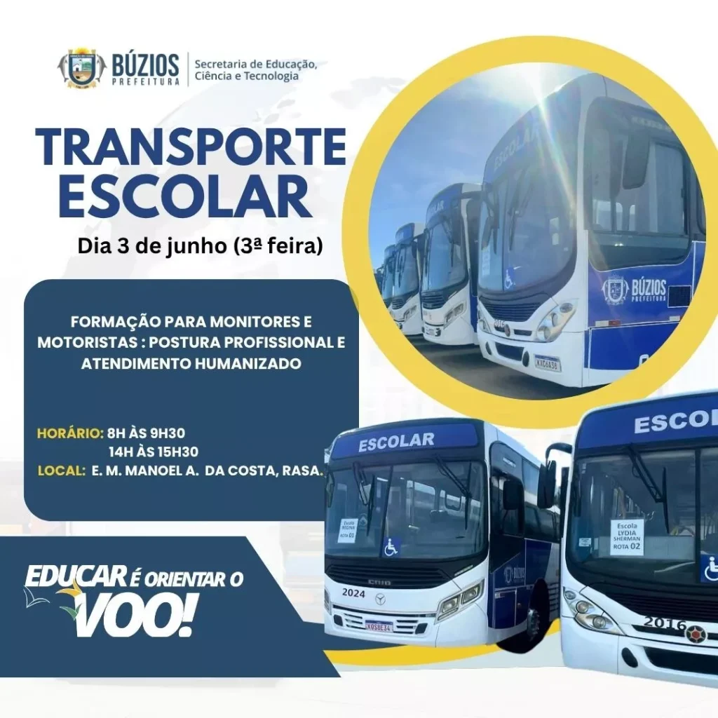 Prefeitura de Armação dos Búzios, por meio da Secretaria de Educação, Ciência e Tecnologia, realizará nesta terça-feira (03), uma formação voltada para os monitores e motoristas do transporte escolar da rede municipal de ensino. Com o tema “Postura profissional e atendimento humanizado”, a ação busca promover a qualificação contínua dos profissionais que atuam diariamente no cuidado e na segurança dos estudantes.