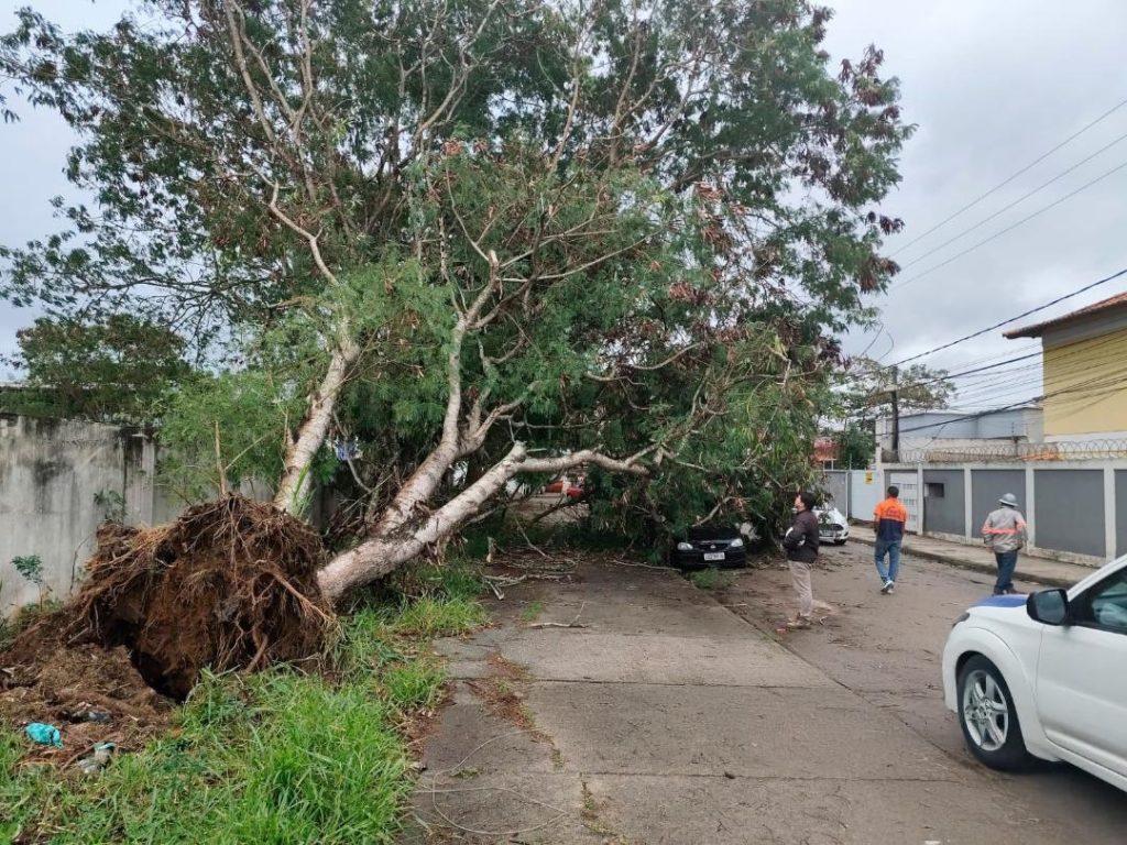 VENTOS – Na manhã desta sexta, a Defesa Civil do Município registrou a queda de uma árvore de médio porte sobre um carro na localidade do Jardim Campomar, sem vítimas, porém com danos ao patrimônio. Um prédio também teve o telhado retorcido pelos ventos.