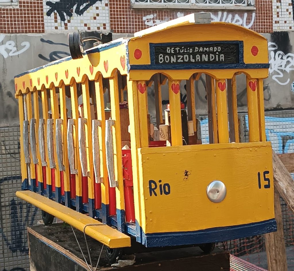 – Eu comecei a pegar as coisas que encontrava na rua e montava pequenas geringonças. Comecei a fazer o bondinho de madeira pintado de amarelo e com corações vermelhos. Ele era assim quando cheguei no bairro. Meus bonecos surgiram para complementar. Eu fazia as coisas e deixava aqui. Algumas pessoas foram se interessando e compraram – lembrou o artista.