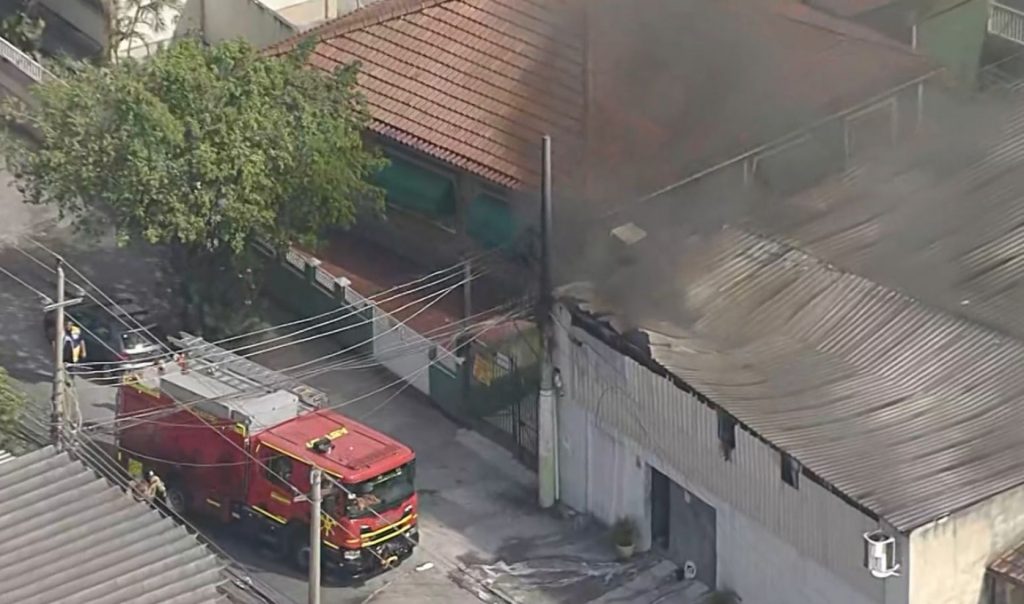 Até o momento, não há registro de vítimas. Por causa do fogo, o telhado do estabelecimento cedeu. As chamas estão atingindo também um poste e a fiação da rua.