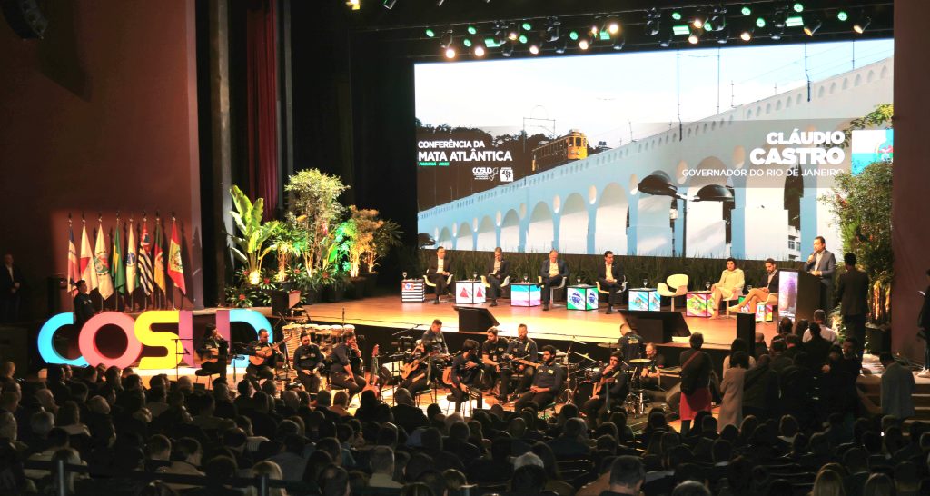 O governador Cláudio Castro tomou posse, nesta terça-feira (19/08), como presidente do Consórcio de Integração Sul e Sudeste (Cosud), em Curitiba, no Paraná. A cerimônia aconteceu durante a Conferência da Mata Atlântica, onde acontece também 13ª edição do Cosud, que abordou o meio ambiente e a sustentabilidade.