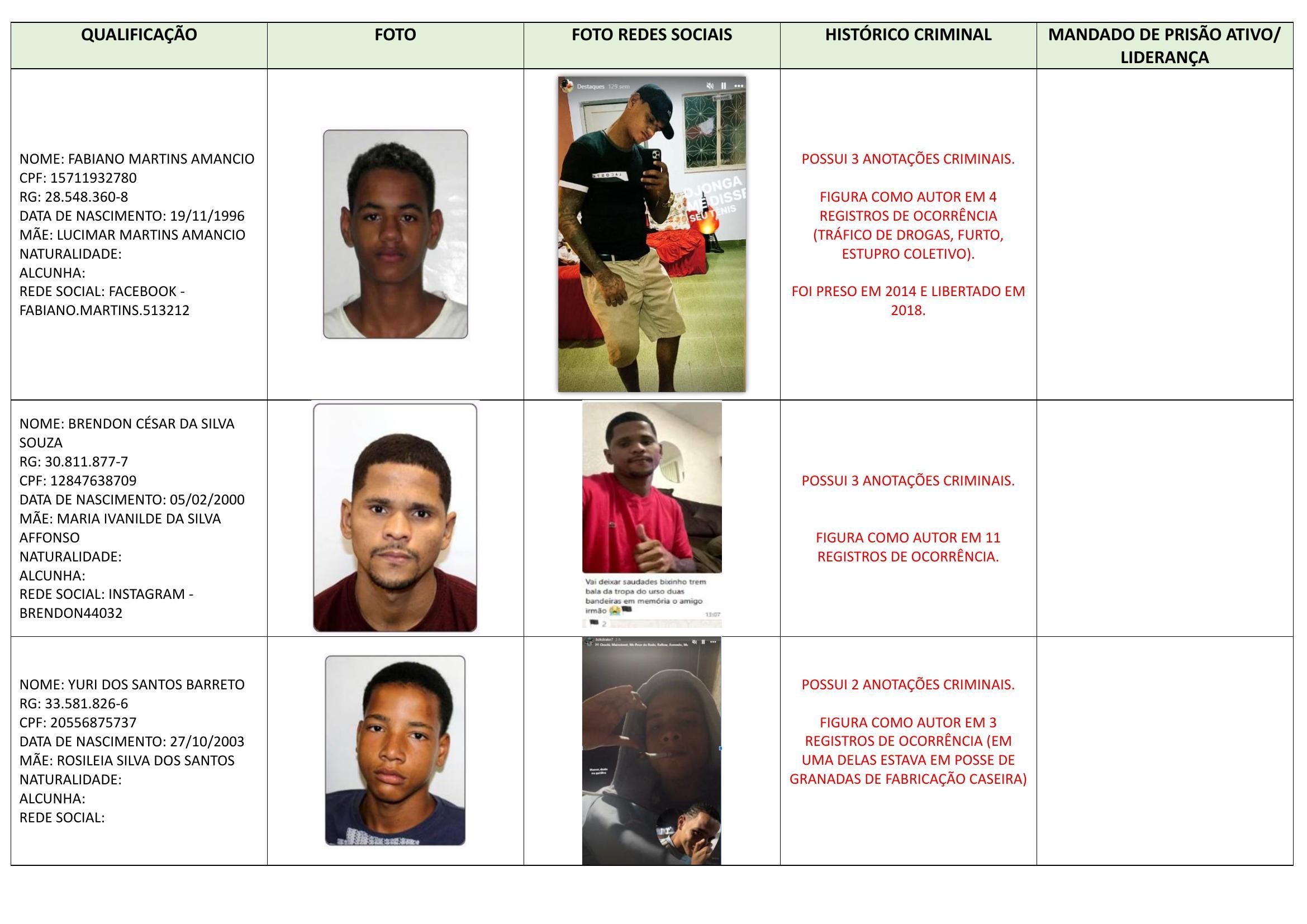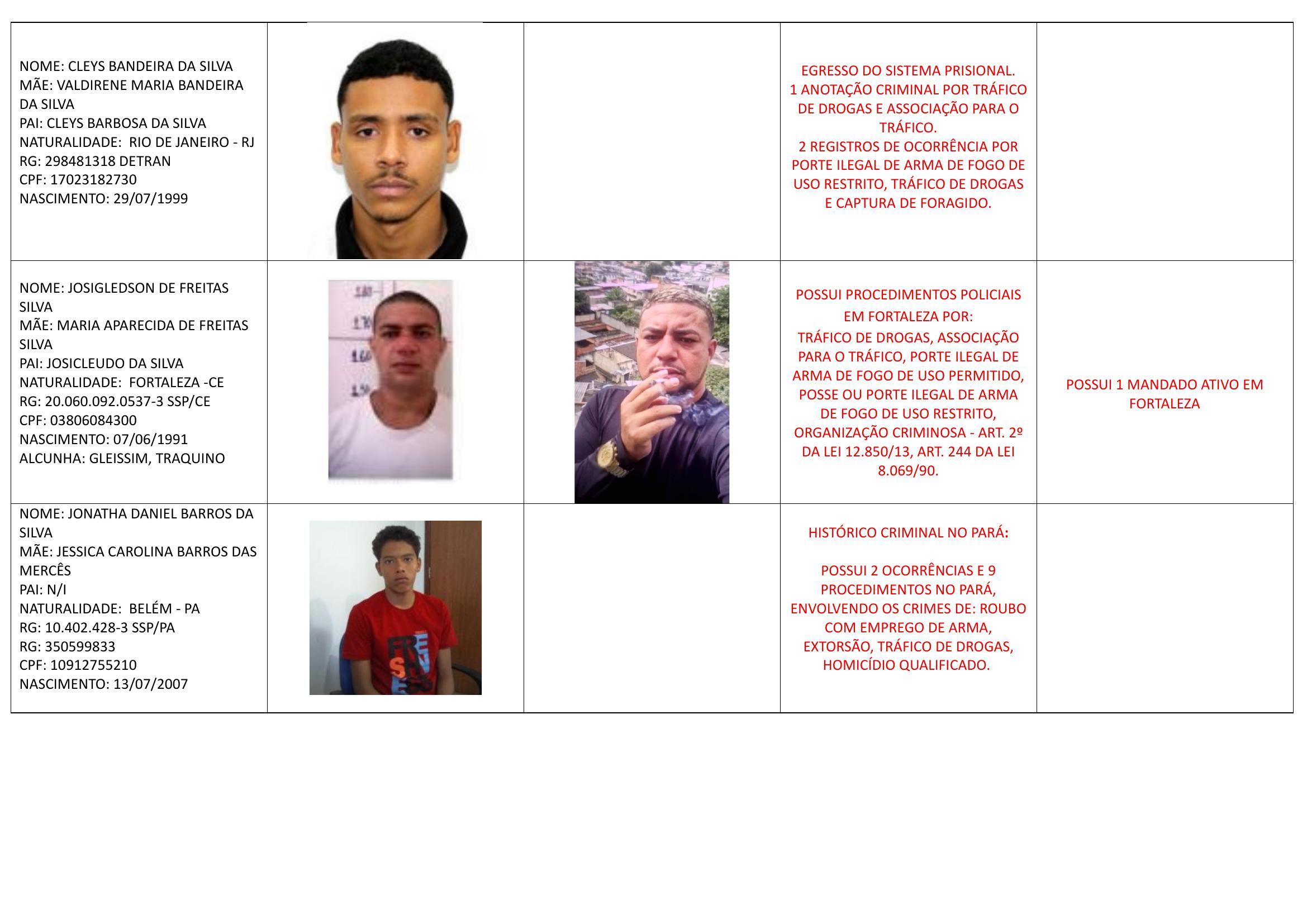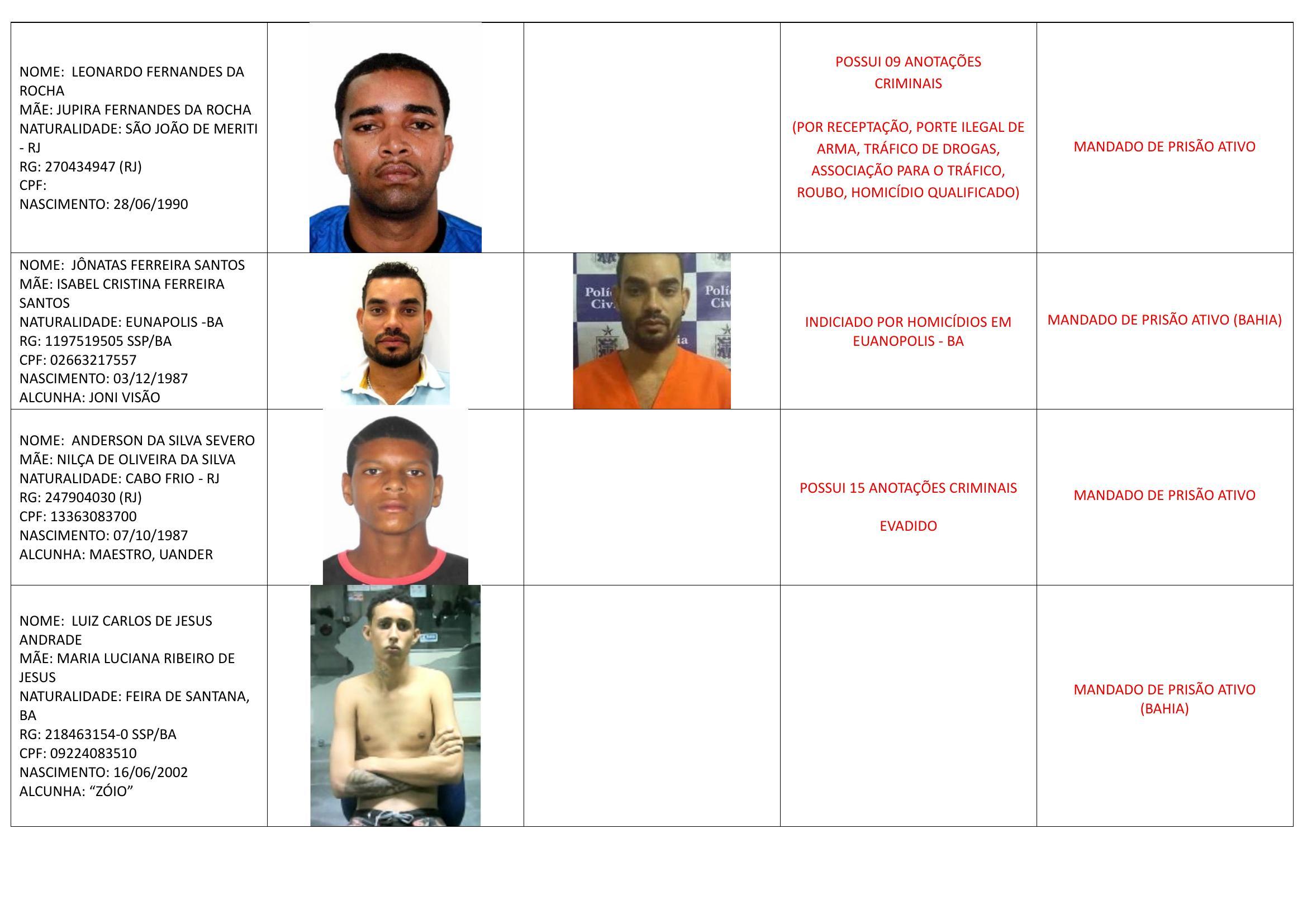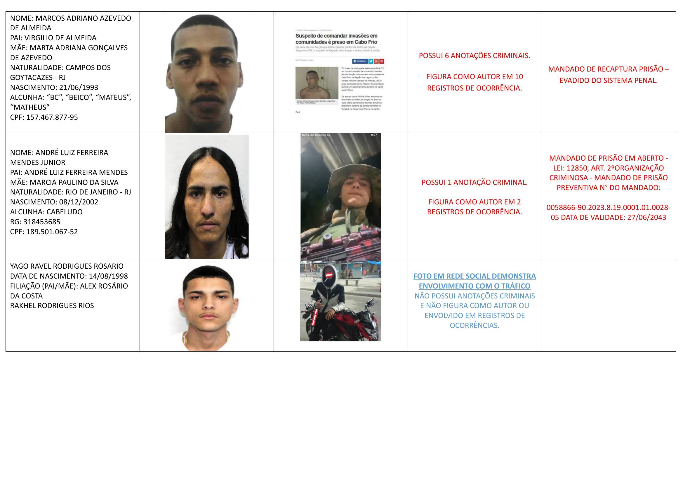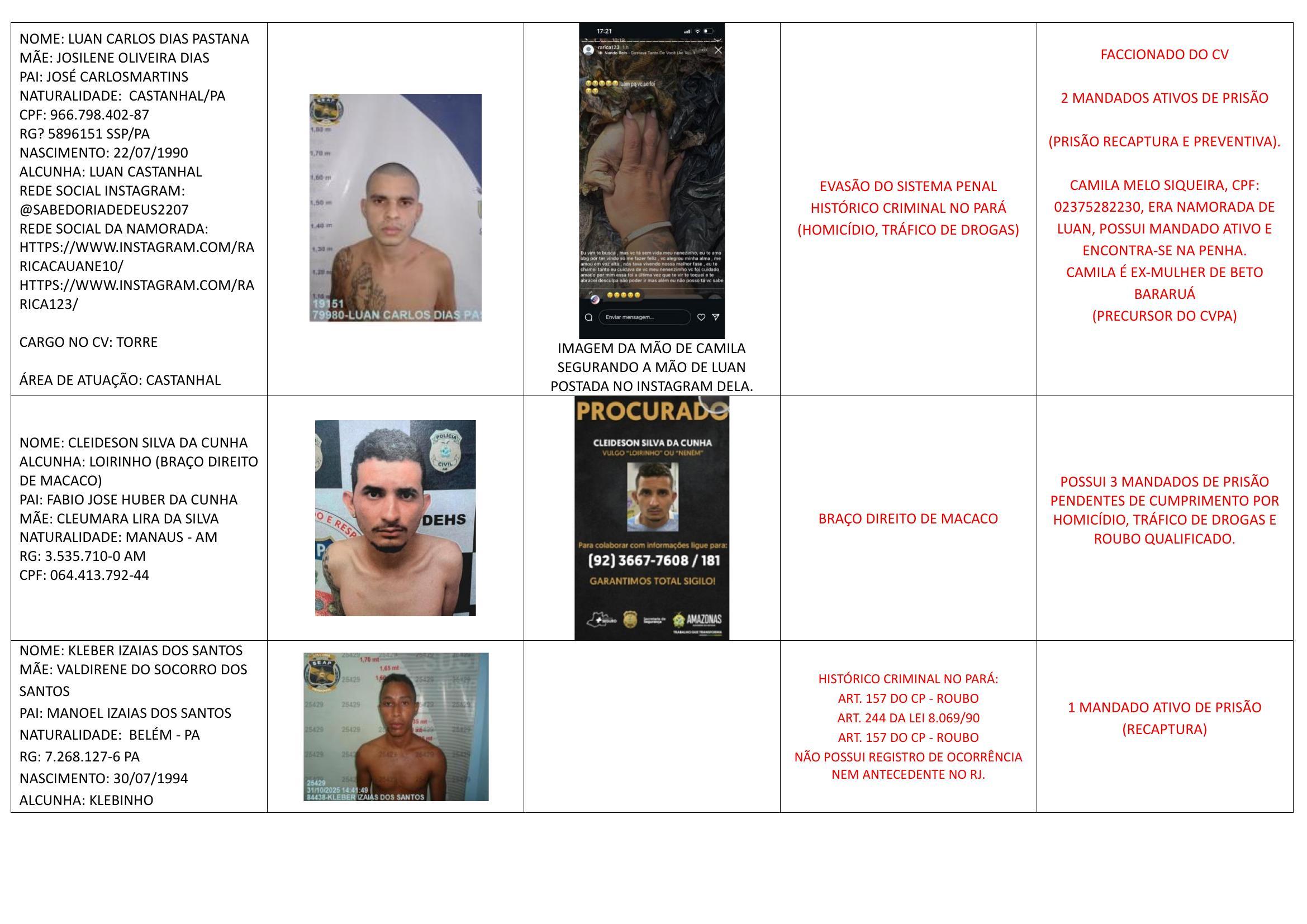 O trabalho de inteligência desenvolvido pela cúpula de Segurança Pública do estado identificou que 59 tinham mandados de prisão pendentes, pelo menos 97 apresentavam históricos criminais relevantes e, dos 17 que não apresentaram histórico criminal, 12 apresentaram indícios de participação no tráfico em suas redes sociais. A lista mostra, ainda, que 62 neutralizados são naturais de outros estados – mais da metade. Até o momento, 19 do Pará, 9 do Amazonas, 12 da Bahia, 4 do Ceará, 2 da Paraíba, 1 do Maranhão, 9 de Goiás, 1 do Mato Grosso, 3 do Espírito Santo, 1 de São Paulo e 1 do Distrito Federal. O relatório indica que, no Rio de Janeiro, há chefes de organizações criminosas de 11 estados da federação, de quatro das cinco regiões do país.