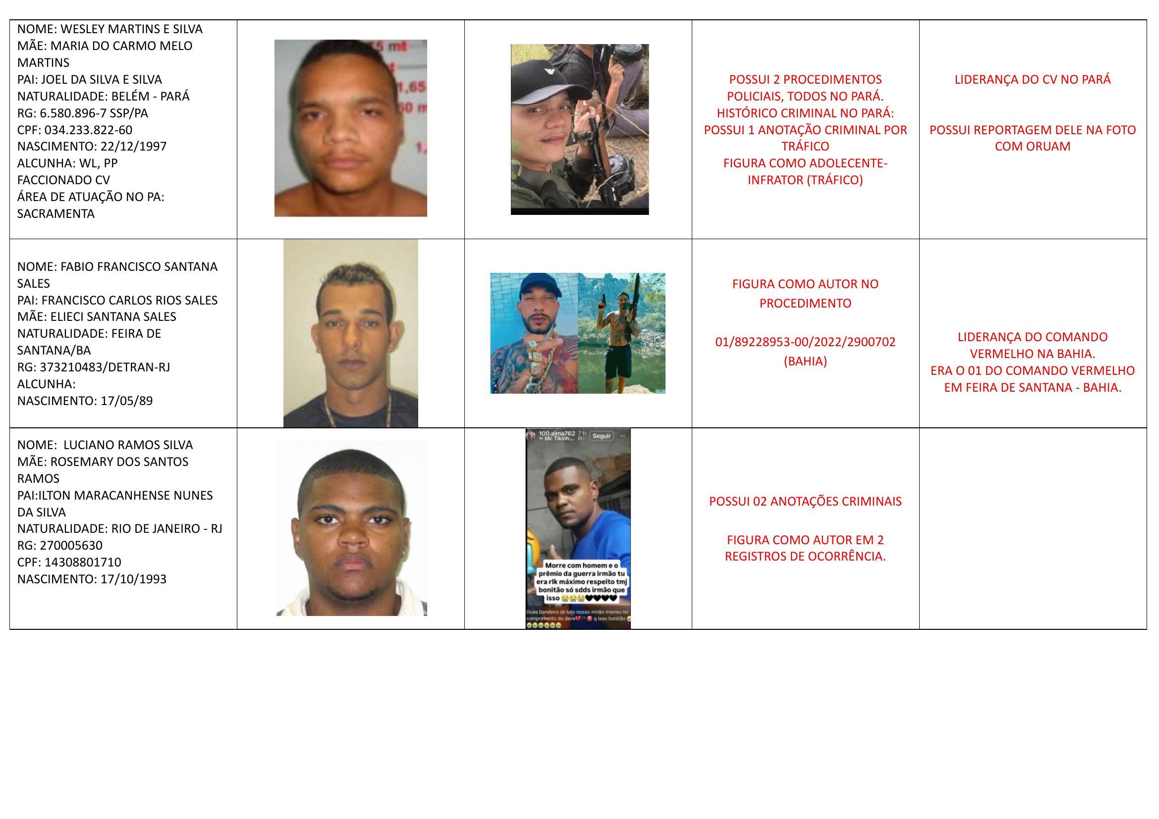 – Essa mínima fração de narcoterroristas neutralizados que não possuíam anotações criminais, nem imagens em redes sociais portando armas ou demonstrando vínculo com facções criminosas não significa nada. Se eles não tivessem reagido à abordagem dos policiais, teriam sido presos em flagrante pelo porte de fuzis, granadas e artefatos explosivos, por tentativa de homicídio contra os agentes de segurança e também pelos crimes de organização criminosa e associação para o tráfico de drogas. Portanto, são narcoterroristas que saíram do anonimato.