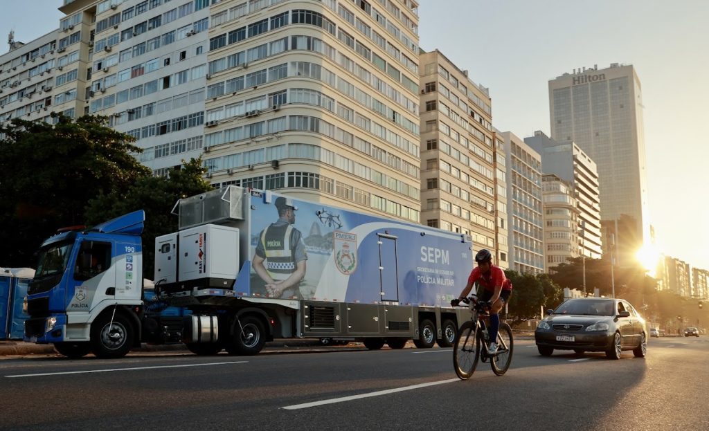 Todo o aparato de policiamento ostensivo terá o suporte de recursos tecnológicos. A carreta que transporta o Centro de Integrado de Comando e Controle Móvel (CICCM) ficará posicionada na Praça do Lido, próxima ao palco montado em frente ao hotel Copacabana Palace.