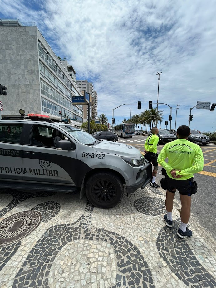 Neste fim de semana, a orla da Zona Sul conta com o reforço do Carro Comando da PM, que está baseado na região do Arpoador e acompanha toda a movimentação nas praias de Botafogo, Flamengo, Leme, Copacabana e Ipanema.