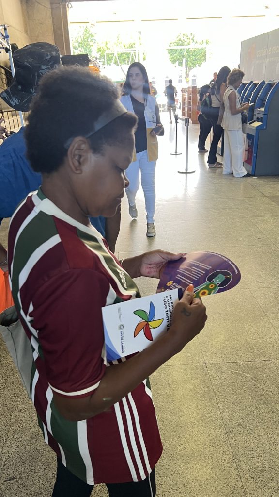 A supervisora de Relacionamento Comunitário e Responsabilidade Social da SuperVia, Sedineia Santos, enfatizou a importância da escolha da estação de trem Central do Brasil como local de promoção de diálogo e esclarecimento sobre o tema.