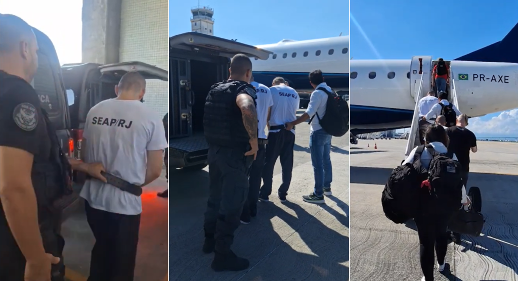 A operação envolveu policiais penais federais e estaduais que escoltaram os presos de Bangu até o Aeroporto Santos Dumont, de onde seguiram para a cidade de Campo Grande.