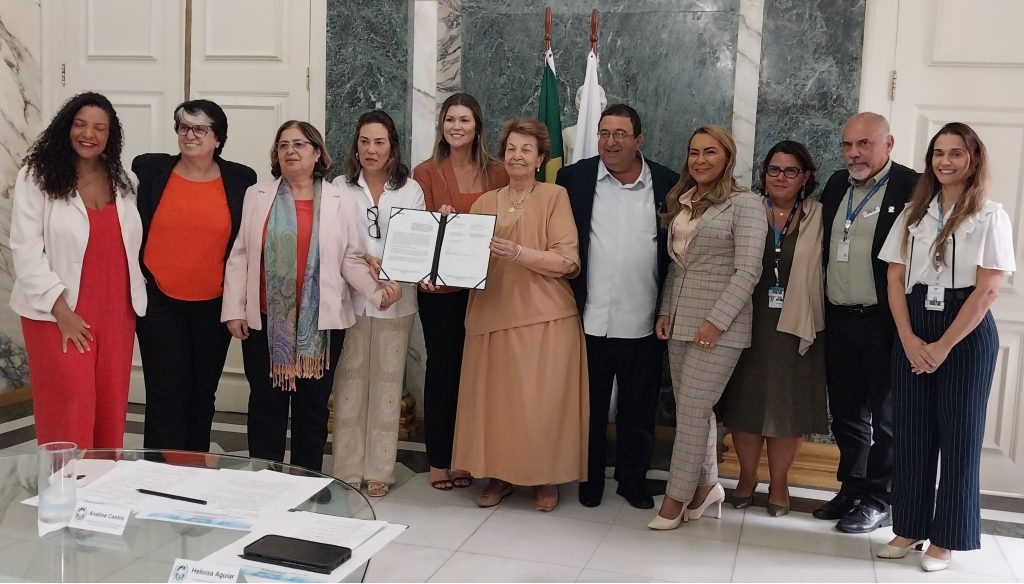 A secretária municipal de Políticas para Mulheres e Direitos Humanos de Volta Redonda, Glória Amorim, participou na tarde desta terça-feira (15), no Rio de Janeiro, da cerimônia de assinatura para a construção de uma unidade da Casa da Mulher Brasileira (CMB) no município. O evento, realizado no Palácio das Laranjeiras – sede do governo estadual –, contou com a presença, entre outras autoridades, da ministra das Mulheres, Aparecida Gonçalves; da secretária de Estado da Mulher, Heloisa Gonçalves; da delegada Juliana Montes, responsável pela Deam de Volta Redonda; do deputado estadual Munir Neto; da primeira-dama do Estado do Rio e presidente de honra do Rio Solidário, Analine Castro; e do coordenador e responsável pela Casa da Mulher Brasileira em Volta Redonda, Guilherme Nogueira de Brito.