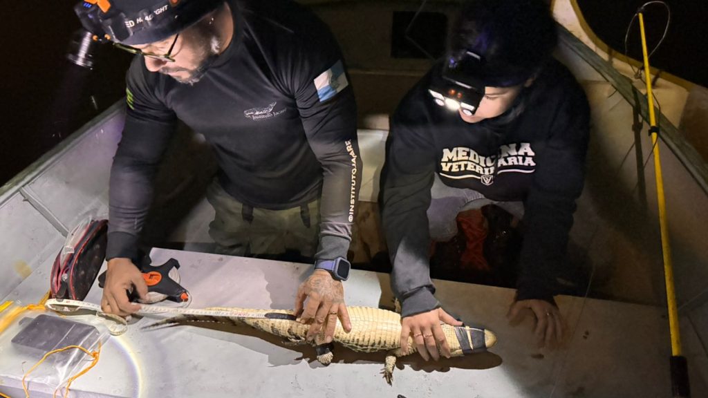 Este é o segundo dia de trabalho de campo realizado pela equipe, que visa acompanhar o comportamento, a população e o habitat natural dos jacarés-de-papo-amarelo, uma espécie considerada vulnerável e que necessita de atenção especial para garantir sua sobrevivência.