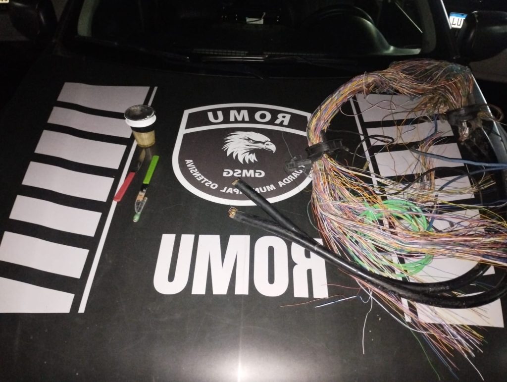 Uma equipe da Guarda estava em patrulhamento noturno quando foi informada que as câmeras da Central de Segurança flagraram três suspeitos furtando cabos na rua. A equipe, então, foi até o local e encontrou dois dos suspeitos. Os homens foram abordados e revistados. Com eles, foram encontrados os cabos já cortados e facas de serra.