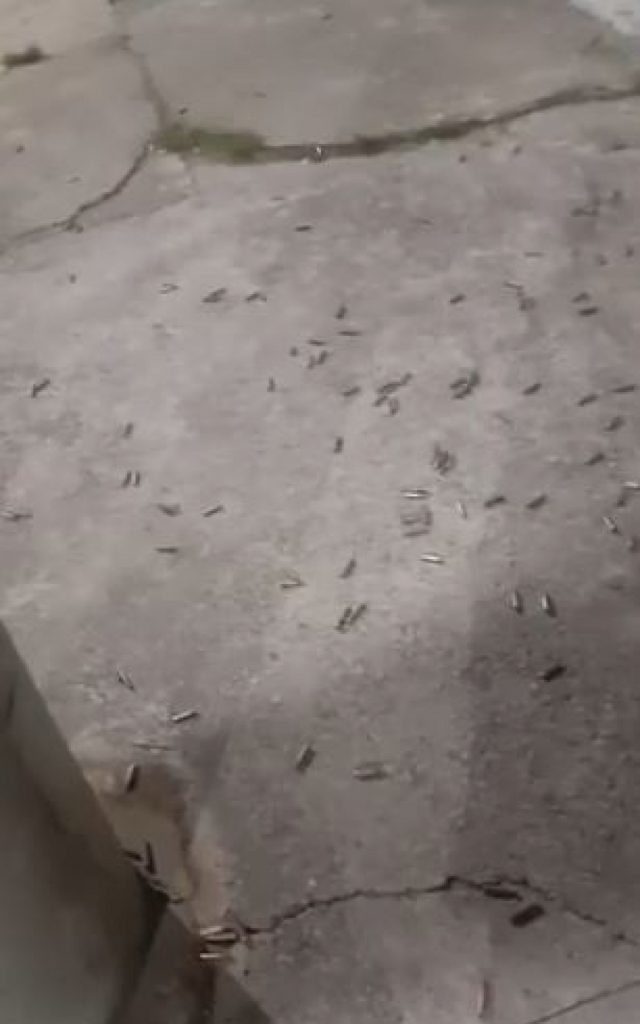 Em imagens que circulam nas redes sociais é possível ver a intensidade dos disparos e diversos projéteis de fuzil espalhados pelo chão.