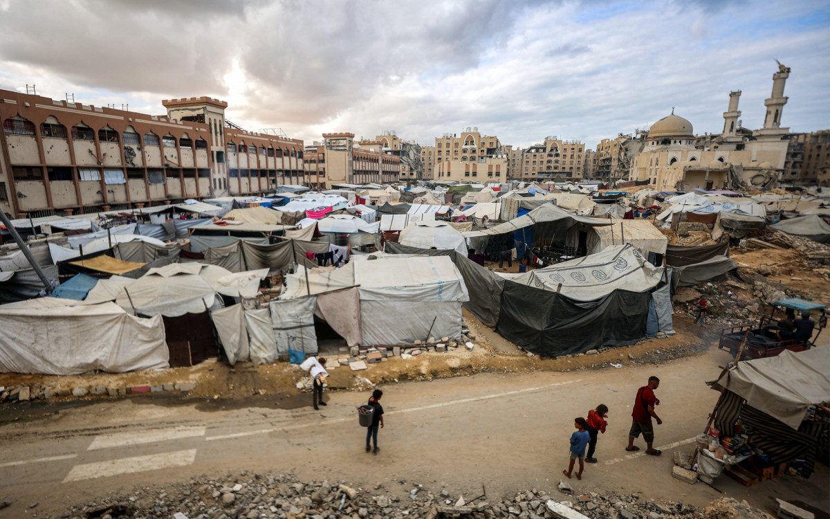 Centenas de milhares de moradores de Gaza estão abrigados em campos superlotados e áreas abertas, com pouco acesso a alimentos, água ou saneamento.