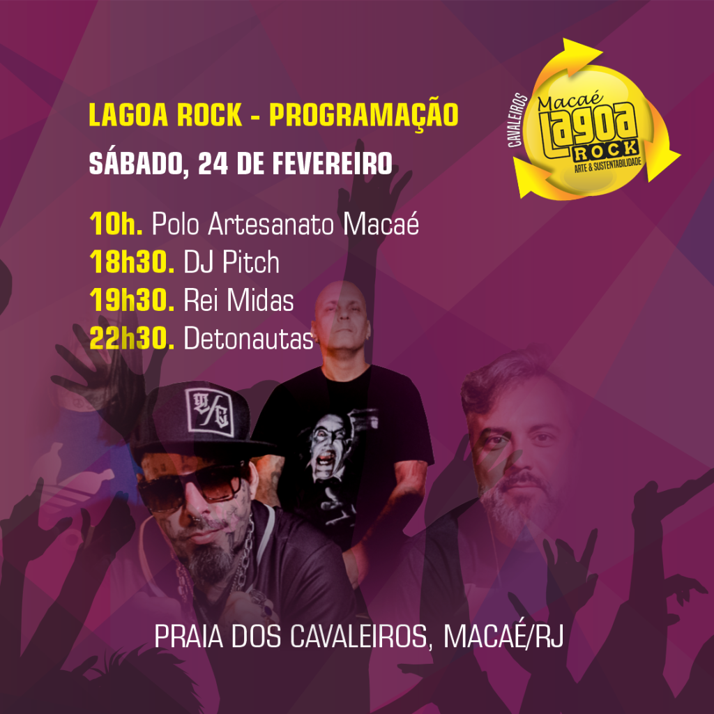Neste sábado (24), a Praia dos Cavaleiros vai se transformar em palco de um dos eventos mais aguardados do ano: o Lagoa Rock. Detonautas, Rei Midas e DJ Pitch são as atrações musicais.