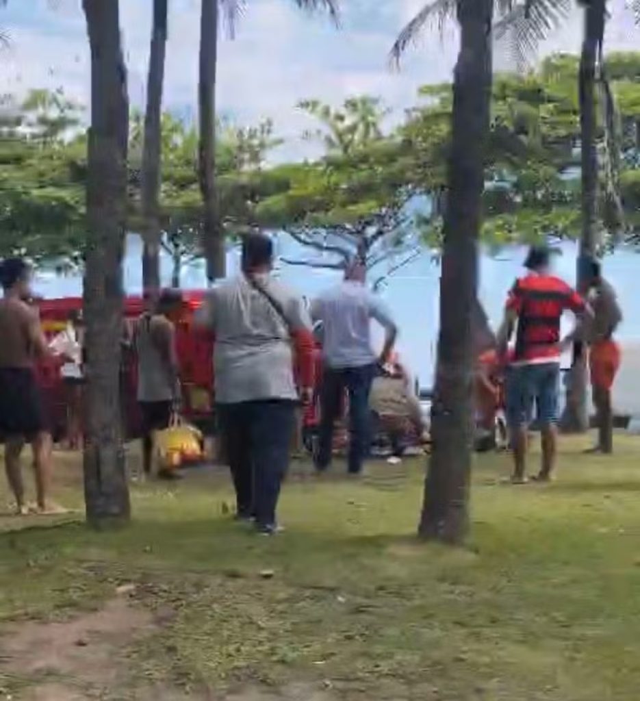 Bombeiros foram acionados às 13h48 para a ocorrência de disparo de arma de fogo. Em vídeos que circulam em redes sociais, é possível ver os militares prestando socorro à um banhista em um canteiro na Avenida Lúcio Costa.