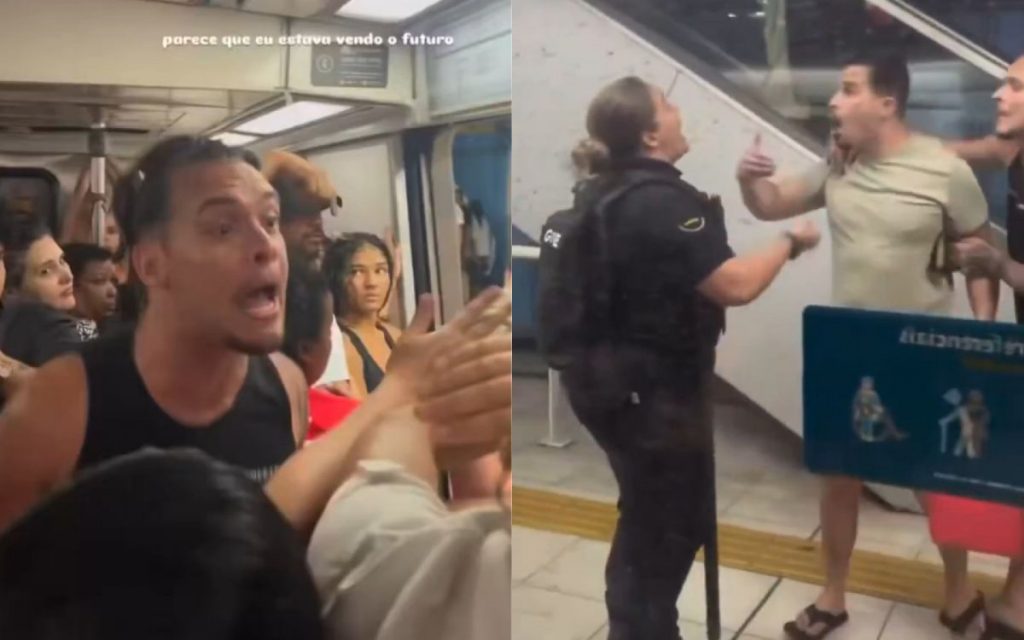 Jonathan, que no vídeo usa uma camisa clara, deixou o vagão, enquanto Emerson, que usava uma regata preta, foi retirado por dois agentes sob xingamentos de “mal comida, mal amada, mal f*dida”. Ele ainda volta para despejar mais ofensas