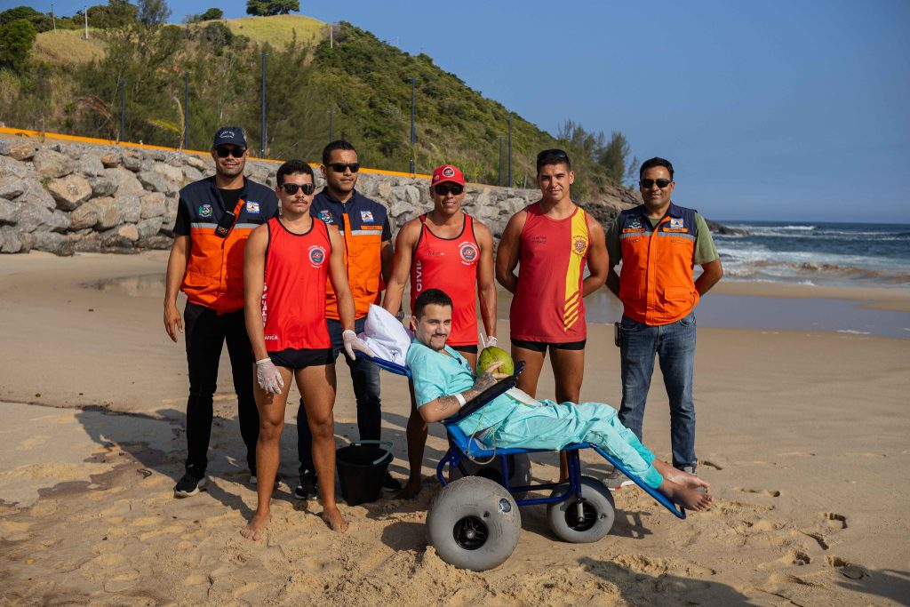 Em tratamento de uma infecção bacteriana, Jean – que ficou paraplégico após ser vítima de uma bala perdida – chegou à praia de ambulância amparado por toda a equipe técnica. Antes de ser internado no hospital municipal para tratar uma infecção bacteriana, o jovem estava há quatro anos sem ver o mar devido à dificuldade de locomoção. Para atender o seu pedido, foi utilizada uma cadeira anfíbia (equipamento específico para transitar na areia) que o levou à beira mar.