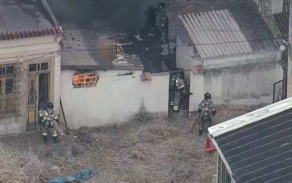 Um flagra feito pelo Globocop, do “Bom Dia Rio”, da TV Globo, mostrou as chamas consumindo o local. Parte do telhado e das paredes do casebre, que fica colado em uma outra casa, ambos aparentemente sem moradores, desabaram.