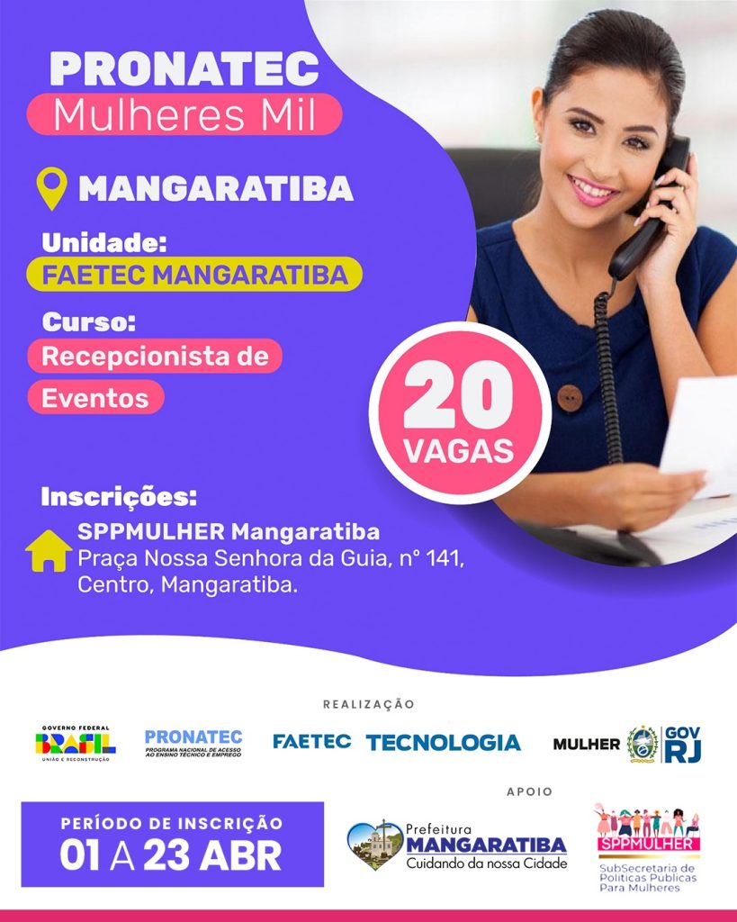 A realização do programa é uma parceria da FAETEC, da Secretaria de Estado da Mulher e da Prefeitura de Mangaratiba, através da Subsecretaria de Políticas Públicas para as Mulheres (SPPMULHER).