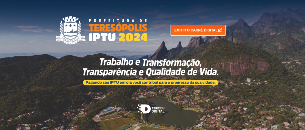 Já estão disponíveis no site da Prefeitura de Teresópolis as guias para quitação do Imposto Predial e Territorial Urbano 2024. Como aconteceu nos últimos anos, não houve aumento do imposto. Conforme previsto na Lei Complementar nº 195, de 14/10/2015, o valor é corrigido em função da variação acumulada do IPCA. O IPTU de 2024 tem 5,19% de correção, relativo à variação acumulada do IPCA de outubro de 2022 a setembro de 2023.