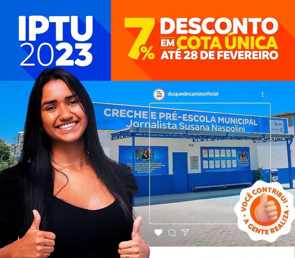 O contribuinte de Duque de Caxias tem até o dia 28 de fevereiro para pagar o IPTU com 7% de desconto na cota única. A Secretaria Municipal de Fazenda esclarece que, na hipótese do não recebimento da guia de pagamento, o contribuinte poderá emitir a 2ª via do carnê, acessando o link: https://abrir.link/Yj9FK