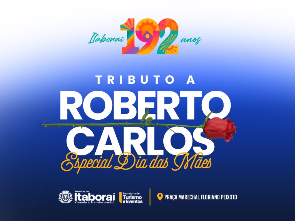 Em comemoração ao Dia das Mães, celebrado no segundo domingo do mês de maio, e aos 192 anos de emancipação político-administrativa de Itaboraí, a Prefeitura, por meio da Secretaria Municipal de Turismo e Eventos (SEMTUR), promoverá no próximo sábado (10/05) um show especial em homenagem ao Rei da Música Brasileira. O “Tributo a Roberto Carlos – Especial Dia das Mães” será realizado na Praça Marechal Floriano Peixoto, no Centro, com entrada gratuita e início às 20h.