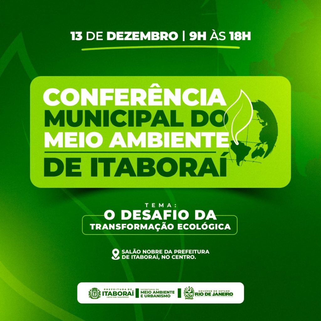 A Prefeitura de Itaboraí, por meio da Secretaria Municipal de Meio Ambiente e Urbanismo (SEMAU), convida a população para participar da Conferência Municipal de Meio Ambiente, que será realizada no dia 13 de dezembro de 2024, das 9h às 18h, no Salão Nobre da Prefeitura Municipal de Itaboraí. Com o tema central “O Desafio da Transformação Ecológica”, o evento marca um importante passo para discutir e propor ações que visam enfrentar os desafios da crise climática global e local. A conferência é aberta a todos os cidadãos com 16 anos ou mais e as inscrições podem ser realizadas pelo link: Formulário de Inscrição.