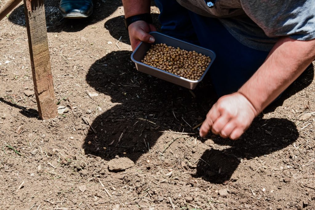 A ação de plantio experimental da soja BRS 267 Edamame contou com a participação do secretário municipal de Trabalho e Renda, Dinei Dias, além de representantes da EMBRAPA.