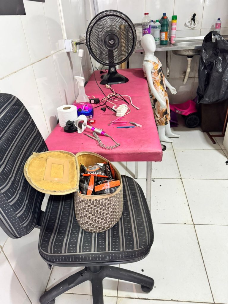 No local, os policiais encontraram diversos equipamentos odontológicos, seringas e facetas dentárias armazenadas de forma insalubre, sob mesas e pias, em desrespeito às normas sanitárias.