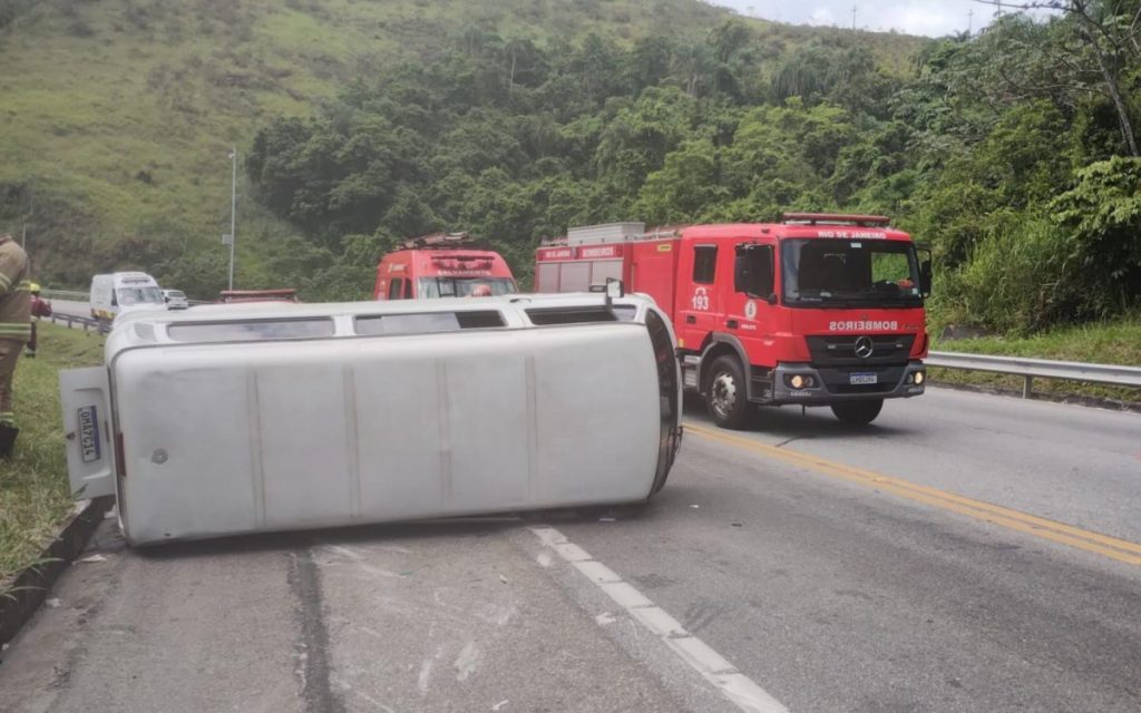 Uma Kombi capotou na manhã desta quarta-feira (22), na rodovia Rio-Santos na altura do bairro Pontal, em Angra dos Reis, na costa verde. O motorista sofreu ferimentos leves e foi atendido pela equipe do Samu, que passava no trecho na hora do acidente. A vítima foi liberada no local.