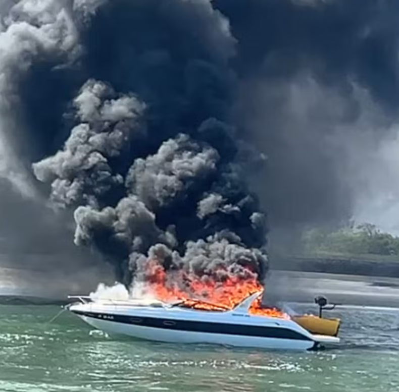 Lancha explode e deixa casal, três filhos e condutor gravemente feridos em Cabo Frio