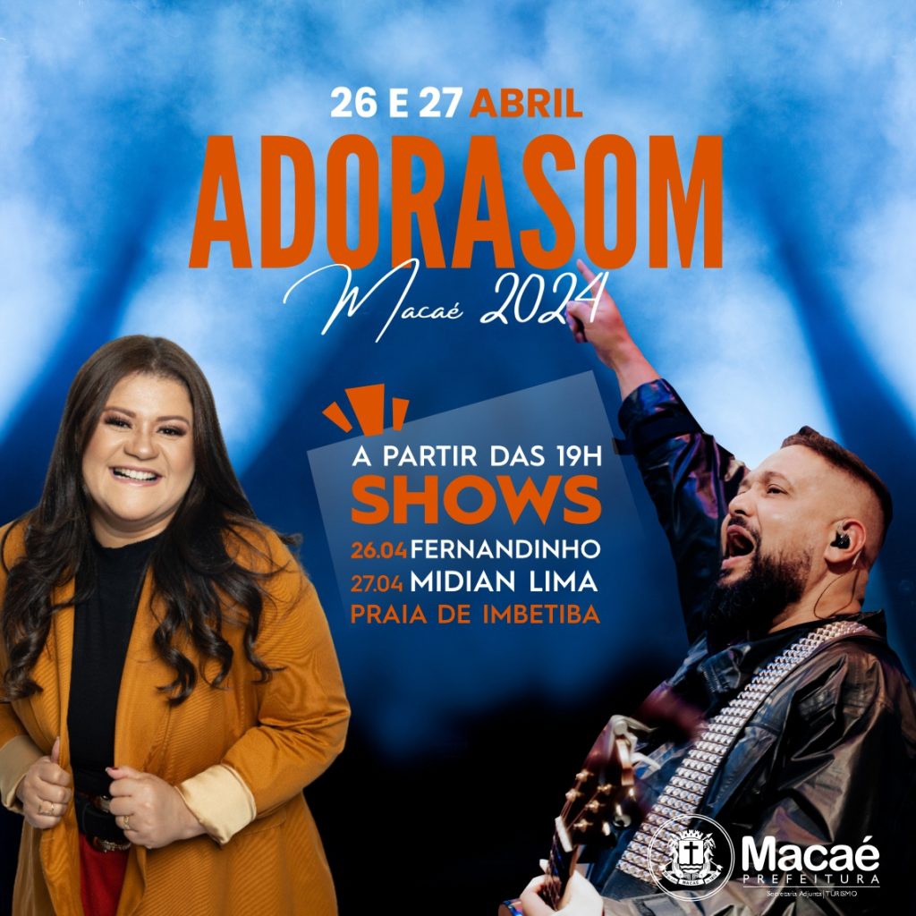 Sucesso em sua primeira edição em 2023, o AdoraSom volta aos palcos da Imbetiba nos dias 26 e 27 de abril. Os cantores Fernandinho e Midian Lima são as atrações confirmadas na programação que envolve fé, louvor e adoração.