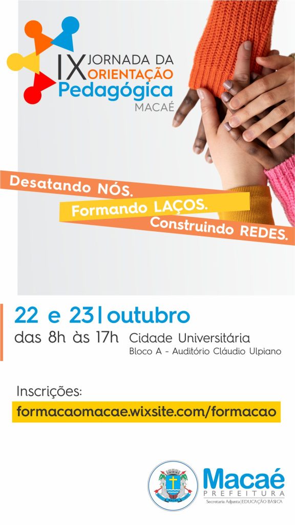 O tema desta edição é ‘Os nós, os laços e a rede’. Os orientadores pedagógicos que desejarem participar devem se inscrever por meio do link https://formacaomacae.wixsite.com/formacao/ix-jornada-pop-2024.