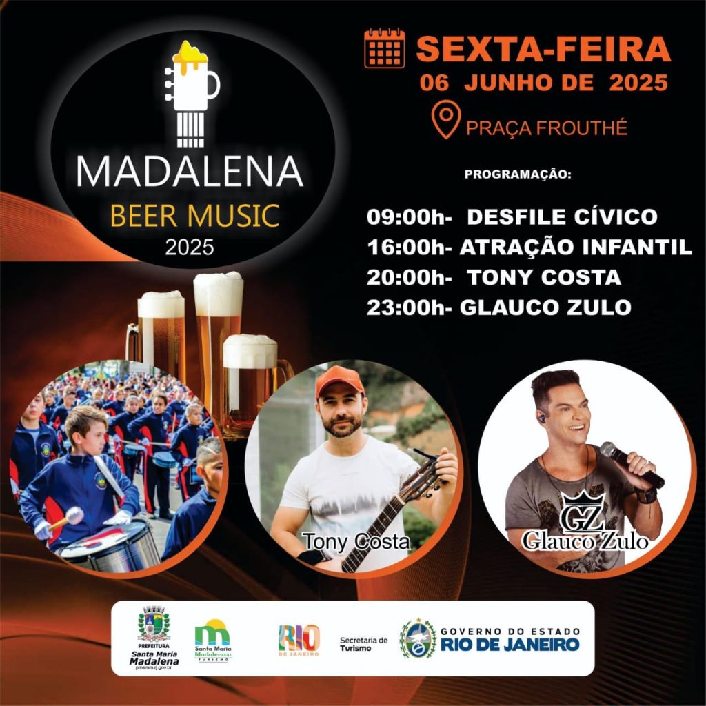 A cidade de Santa Maria Madalena, na região serrana do Rio de Janeiro, celebra seus 163 anos de emancipação com mais uma edição do Madalena Beer Music, evento que se tornou referência na agenda cultural do município. A festa acontece entre os dias 6 e 8 de junho, na Praça Frouthé, e contará com entrada gratuita, shows musicais, atividades culturais e área gastronômica.