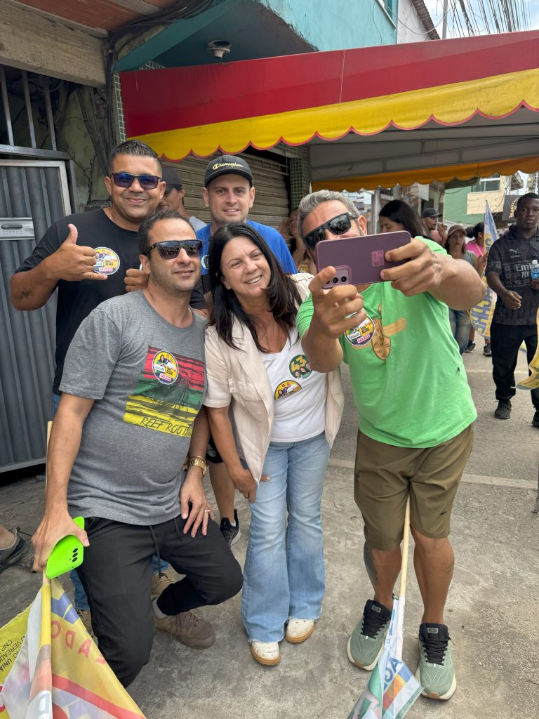 Prefeita e candidata à reeleição participou da agenda ao lado do candidato a vice, Léo Mendes; agenda segue com caminhada e visitas na zona rural neste domingo