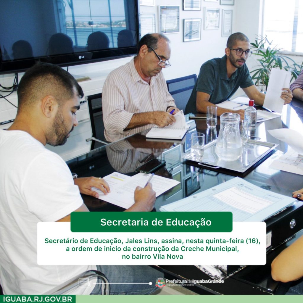 Na manhã desta quinta-feira (16), o secretário de Educação, Jales Lins, assinou a ordem de início da construção da Creche Municipal, no bairro Vila Nova. A obra, com data de início prevista para o dia 27 deste mês, será realizada através de recursos próprios com previsão de entrega para o final de agosto de 2023.